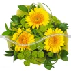 Уменьшенный: гербера желтая - 3 шт., хризантема кустовая зеленая - 2 шт., берграсс,  фетр зеленый.